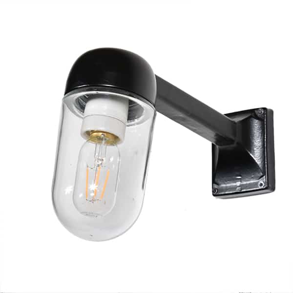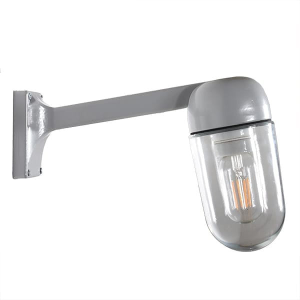 Dette funkis-armatur har en retrostil, der passer til alt fra gamle huse til huse i moderne eller funkis-stil. Armen er 28 cm ud fra væggen. Det runde glas er 10 cm i diameter.