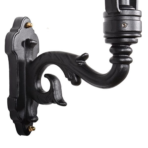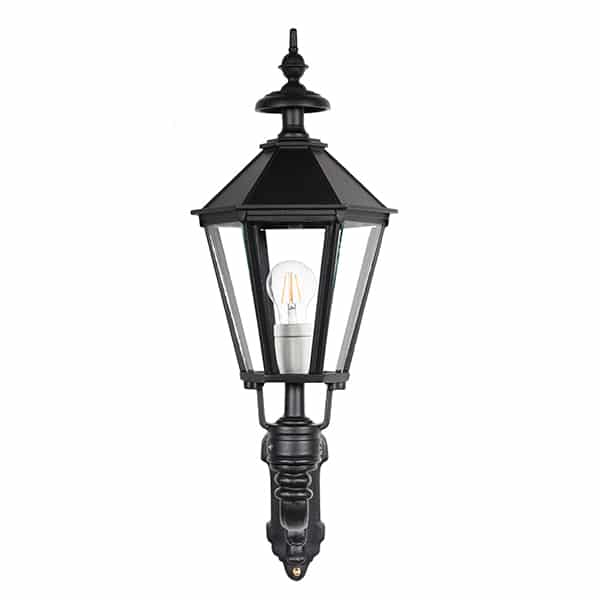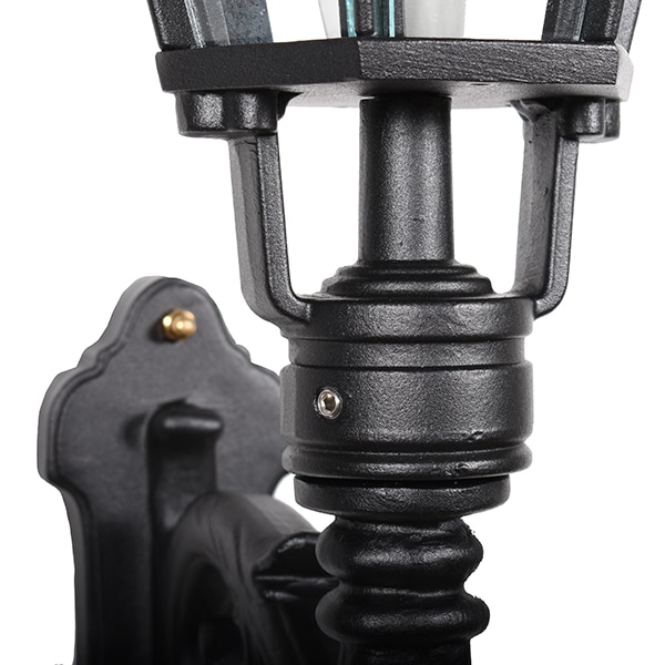 Væglampen er lavet af solidt håndstøbt aluminium, hvilket gør det nemt at sætte den op på væggen. Facadelampen er pulverlakeret to gange for at opnå den bedste beskyttelse med en matsort strukturfarve, der giver en gammeldags, ægte fornemmelse. Denne klassiske væglampe er populær, fordi materialet ikke ruster, og den er så vedligeholdelsesfri, at det er en væglampe for generationer. Klassisk facadebelysning er smuk ved din indgang, f.eks. ved dobbeltdøre.
