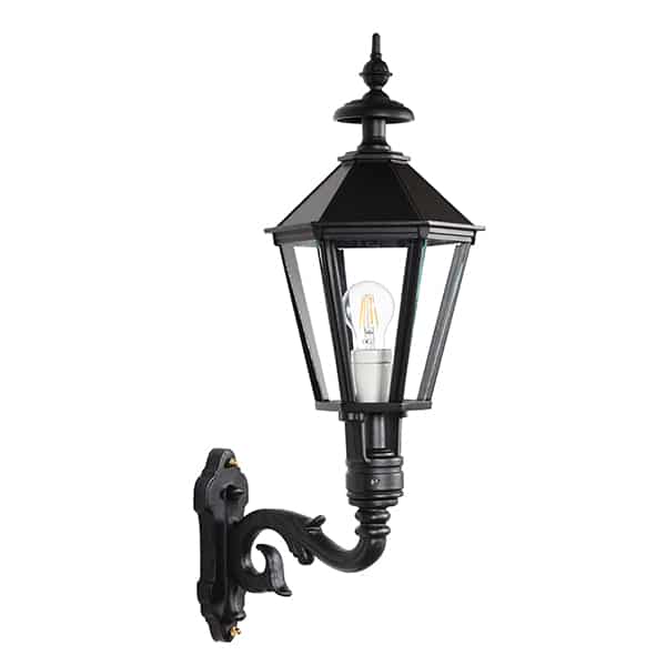 Facadebelysningen er sekskantet og har ægte glas, der gengiver et smukt lysbillede. Det buede håndstøbte vægbeslag bliver et fint smykke med lanternehuset på din facade, en væglampe, der tiltrækker øjnene i sit enkle og ægte klassiske design. Den klassiske væglampe har en porcelænssokkel med E27-fatning, og det er også muligt at bruge LED i vores armaturer.