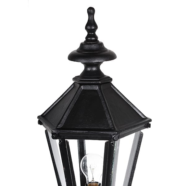 Vores komplette lygtepæle er lavet af solidt kvalitetsstøbejern, de er støbt i hånden, i den gammeldags sandform, som det er blevet gjort i århundreder. Stolpelanternen og stolpen - alt er støbt i støbejern og selv de små detaljer som det øverste spir og fodpladen. Hele udendørsbelysningen er malet med korrosionsbeskyttende maling og derefter håndmalet i matsort vådlak - præcis for at få den rigtige gammeldags følelse, som man ønsker på disse klassiske lamper. Alle vores stolper leveres i tre dele. Lanternen har en sokkel, der kan bruges med E27-fatning og LED-lamper. Lygtepælen er CE-mærket.
