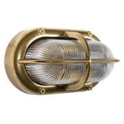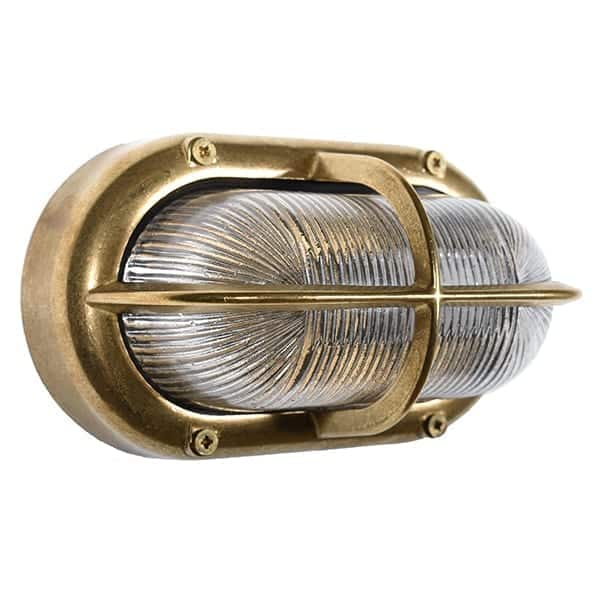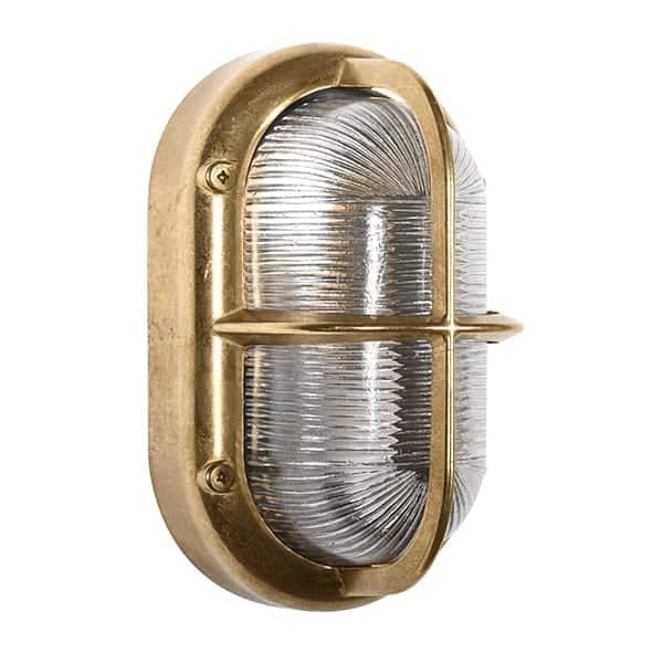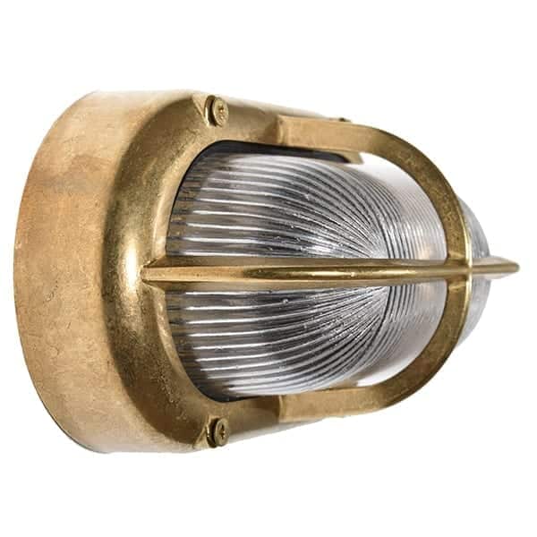 Væglampe i marinestil med massiv messing. Virkelig solidt armatur, der kan tåle saltvand. Armaturet har klart glas, men fås også i en matteret version. Stilfuldt gitter i midten af denne væglampe. Virkelig flot belysning til din pool. Lampen leveres med en E27-fatning, som også gør den velegnet til en LED-lyskilde. Alle vores produkter er CE-godkendte.