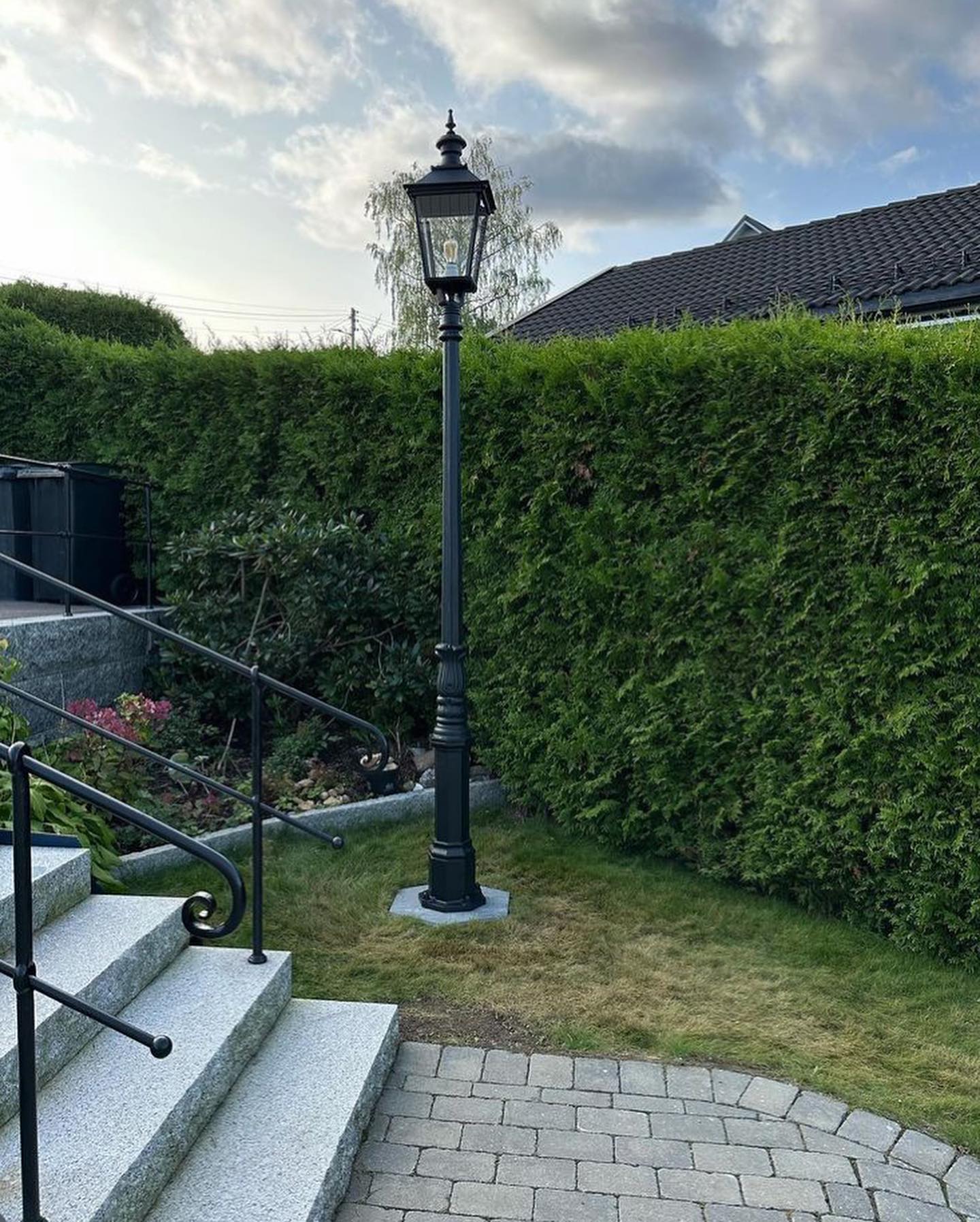 Stolpelanterne i støbejern fra vores kollektion. En meget veludført udendørsbelysning til kommende generationer. Denne type klassiske stolpelanterne har oplyst gader, pladser, parker, haver og huse i århundreder. Stilen er elegant og tiltalende, og man kan mærke og se, at en stolpelanterne i støbejern er et robust armatur, der vil pryde sin plads i lang tid!