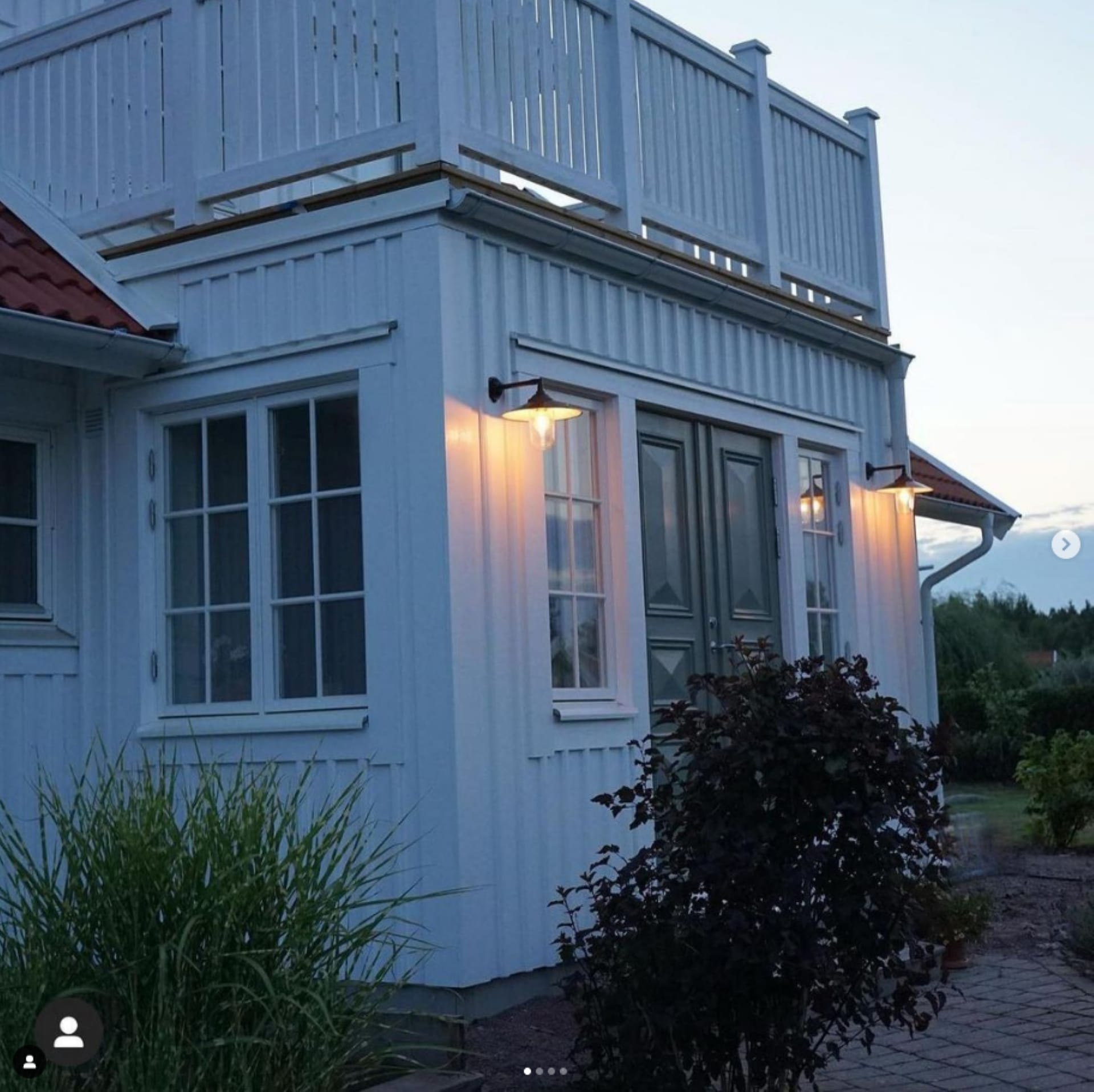 Smukke lanterner af stål monteret på tilbygningen klæder facaden som et smykke!
