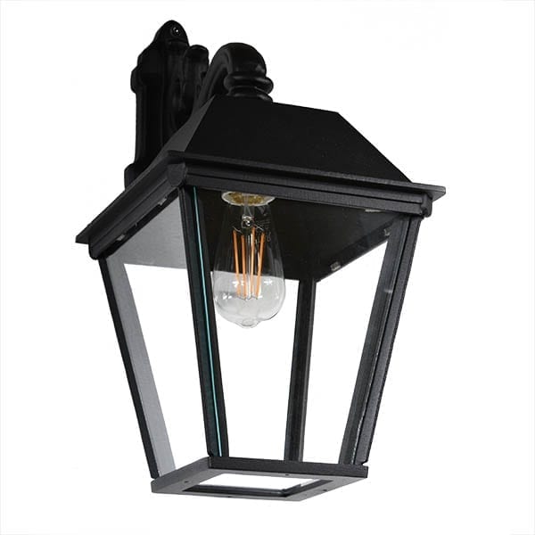 Armen og lanternen er lavet af solidt håndstøbt aluminium, hvilket gør denne udendørslampe nem at montere på væggen. Facadelampen er pulverlakeret to gange for at opnå den bedste beskyttelse, med en mat sort struktureret farve, som giver en gammeldags autentisk fornemmelse. Denne klassiske lampe er populær, fordi materialet ikke ruster, og den er så vedligeholdelsesfri, en væglampe i generationer. Denne klassiske udendørs væglampe er smuk mange steder, f.eks. over døre, ved siden af dørene ved indgangen eller på husets facade.